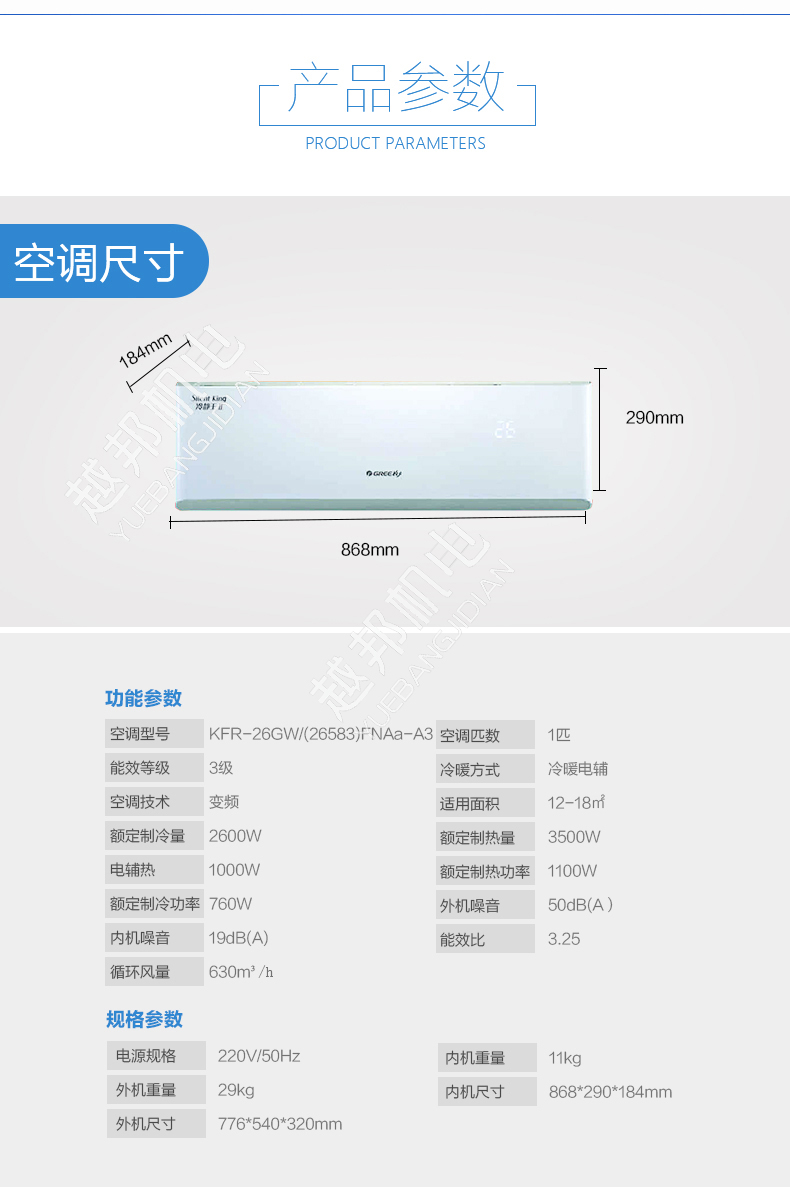 【產(chǎn)品參數(shù)】: 空調(diào)功率: 大1.5匹 ;工作方式: 變頻 ;空調(diào)類型: 壁掛式 ;冷暖類型: 冷暖電輔;